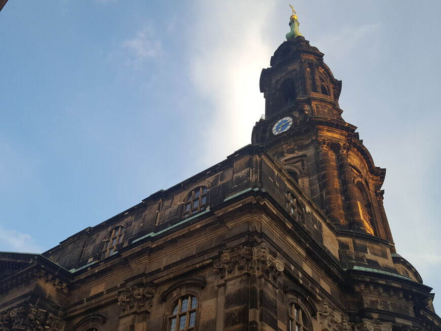Kreuzkirche is the main evangelical church of Dresden. Its history begins in 1168, when a Romanesque basilica stood on this site, named after St. Nicholas. After the Austrian princess Constance von Babenberg gave the church a relic of the Holy Cross (part of the cross on which Jesus Christ was nailed), the church became known as the Church of the Holy Cross, or Kreuzkirche (kreuz - cross, kirche - church).