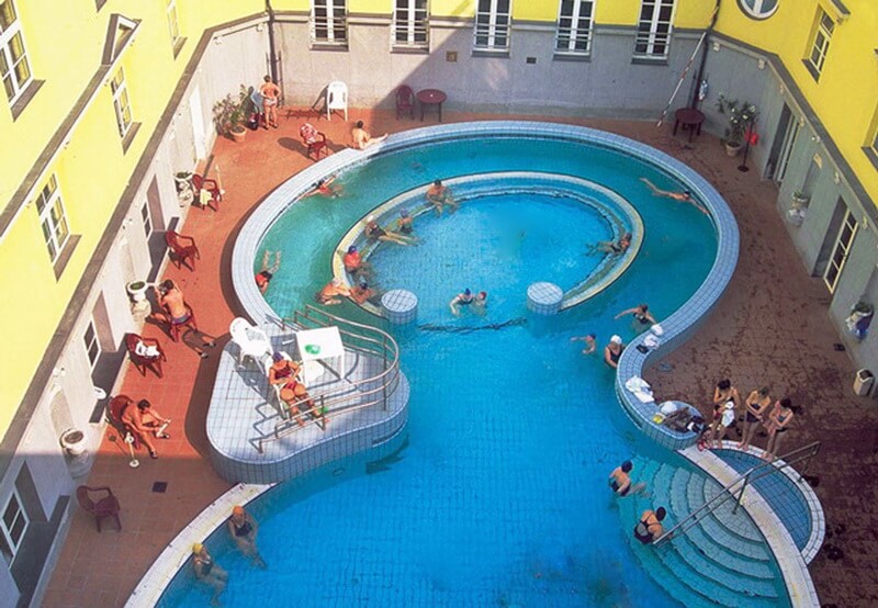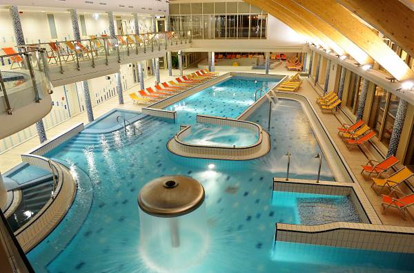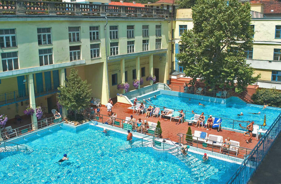 The Lukach Baths has five indoor and two outdoor pools (temperature 22-40 degrees), various types of saunas, a solarium, massage cabins, and a drinking spring. In open pools, you must wear a swimming cap.