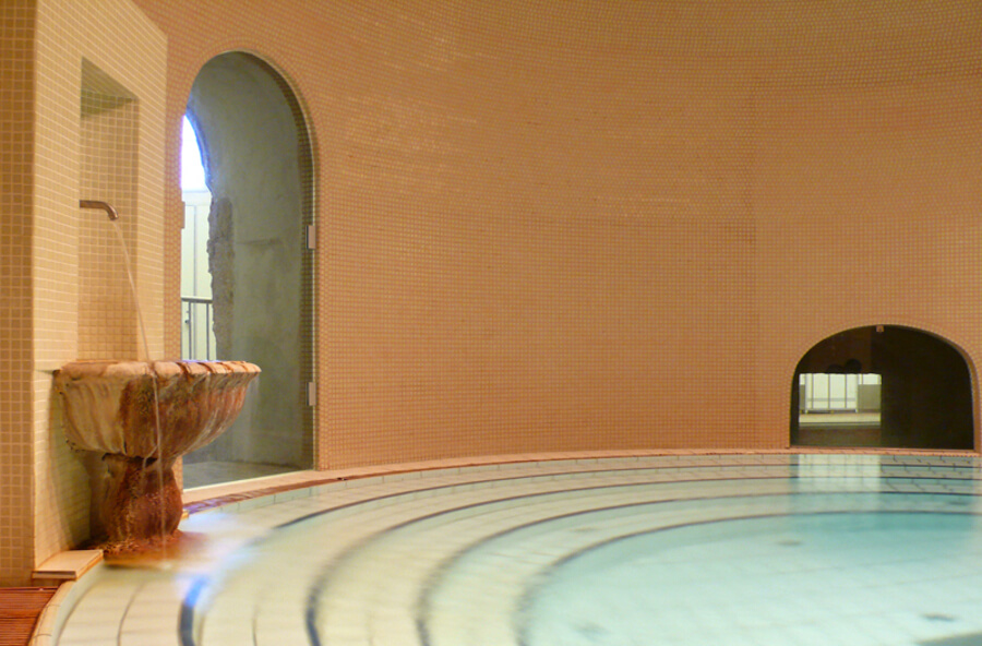 The baths is shared between men and women. Thermal waters are not recommended for children under 14 years of age. When purchasing tickets, you are given a bracelet with which you can enter, open and close your locker or cabin. The changing rooms are equipped with special cabins.