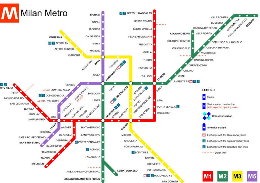 The Milan metro is the largest in Italy. It was planned to be built in the mid-nineteenth century, and then in the twenties of the twentieth century, but due to subjective or objective reasons it was opened only in 1964. The metro consists of 101 kilometers of tracks, 113 stations and four lines: M1 - red, M2 - green, M3 - yellow, M5 - purple. The expansion of existing lines and the construction of a new blue line M4, which will connect the city with Linate Airport, are currently ongoing. The Milan metro is operated by the transport company ATM. He also manages the operation of other public transport in the city.