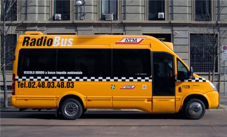 It's kind of a mixture of a bus and a taxi. It works like this: if you are standing at one of the stops on the route, it will stop when you raise your hand. You can even book in advance by calling 02-48-03-48-03 or using the mobile application. After boarding, you will tell the driver which stop on the route you want to get off at. This is convenient because the bus does not stop at intermediate stops. Regular ticket is valid. For details, see the official website ATM https://www.atm.it/it/ViaggiaConNoi/Pagine/radiobus_quartiere.aspx