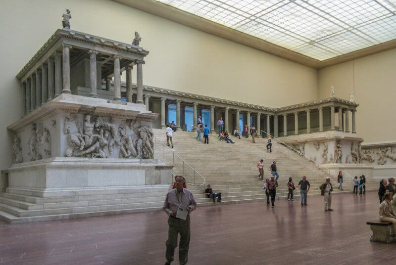 The museum consists of two parts. The first was built in 1901, the second in 1930. The Pergamon Museum is the most important museum on Museum Island and the most popular museum in Berlin. More than a million people visit it every year. Here are such ancient architectural masterpieces as the Pergamon Altar, on which the gods of Olympus fight the giants: