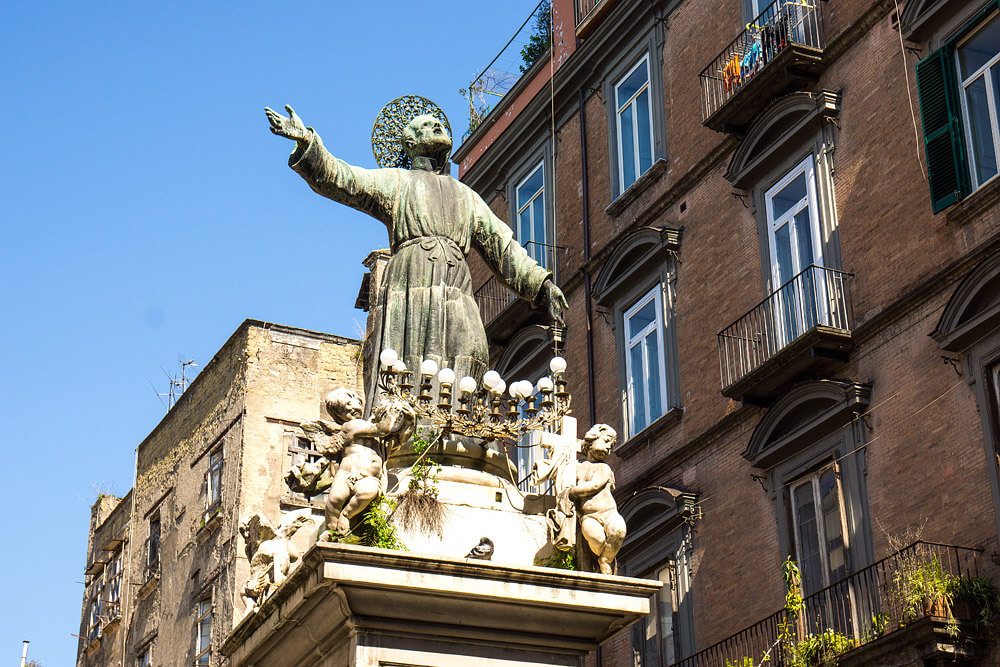 Statue of Saint Gaetano. Gaetano is a Catholic saint. He is considered the patron saint of women in labor. He died in Naples during civil unrest while trying to stop the bloodshed.