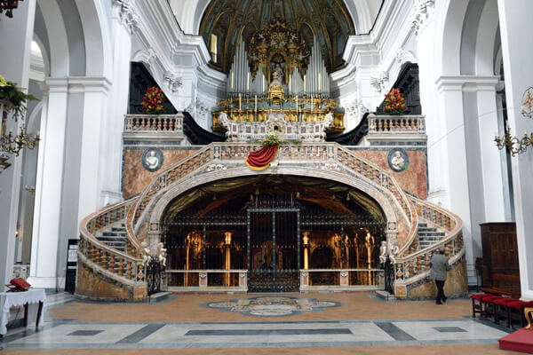 The entrance to the catacombs is disguised by an unusually high altar.