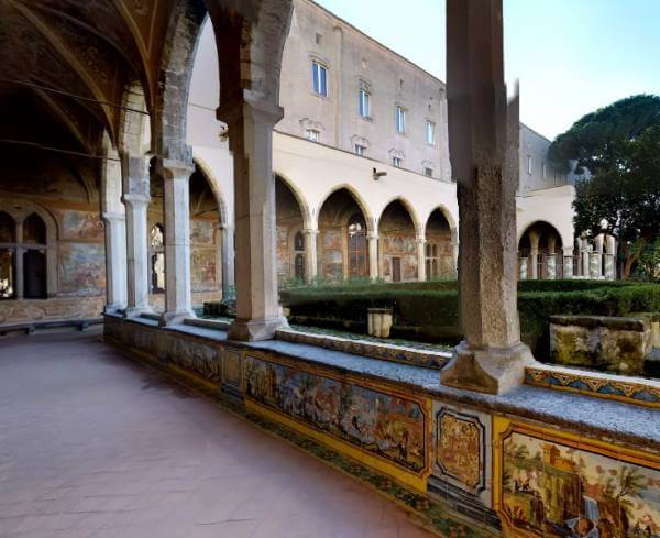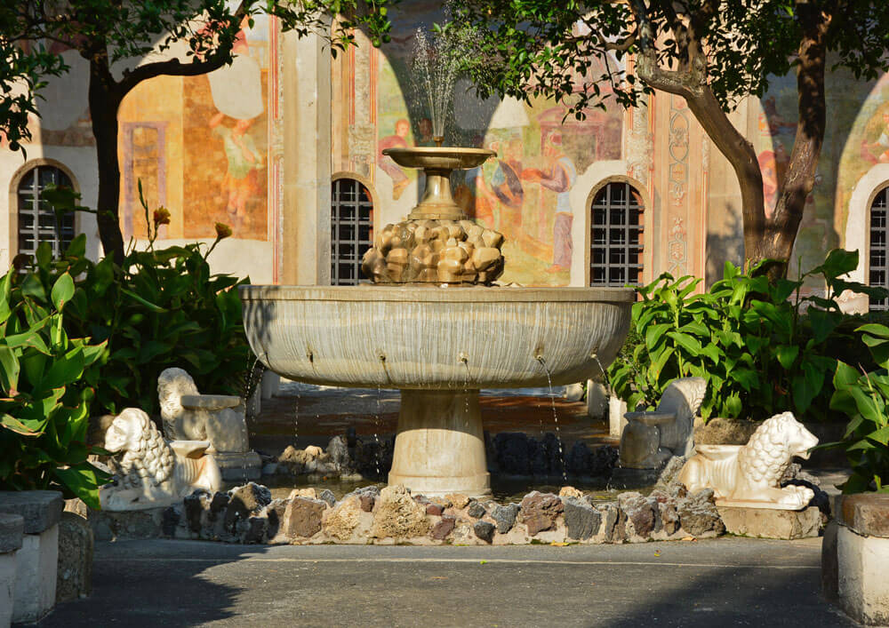 The church has a beautiful courtyard (82x87m), designed by Domenico Antonio Vaccaro. Here you will see octagonal columns and piles in the Rococo style, fountains, and two cruciform alleys. Everything is painted with flowers, mythological and everyday scenes.