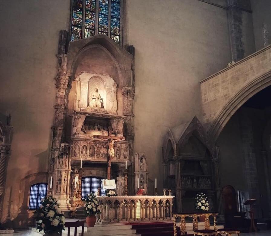 Santa Chiara, also known as the Church of St. Clare of Assisi (Clara in Italian - Chiara), is a complex of religious buildings in Naples, including a monastery, a bell tower, and the tomb of the kings Angevin dynasty and archaeological museum. They say that couples in love who get married in this church will live together happily ever after and will not know poverty or betrayal. Therefore, the Church of Santa Chiara is very popular among young Neapolitan girls and boys who want to get married, as well as among tourists coming to the city.