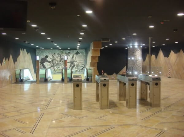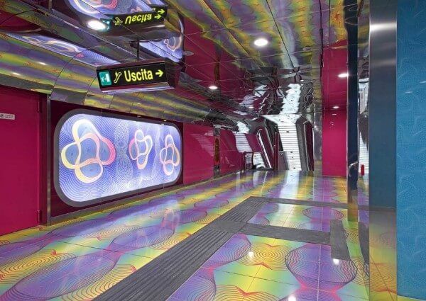 This line is a work of art. Talented craftsmen worked on its interior. The creator of the Garibaldi station is the French architect Dominique Perrault. It is decorated with works by Michelangelo Pistoletto (winner of the Golden Lion at the 2003 Venice Biennale).