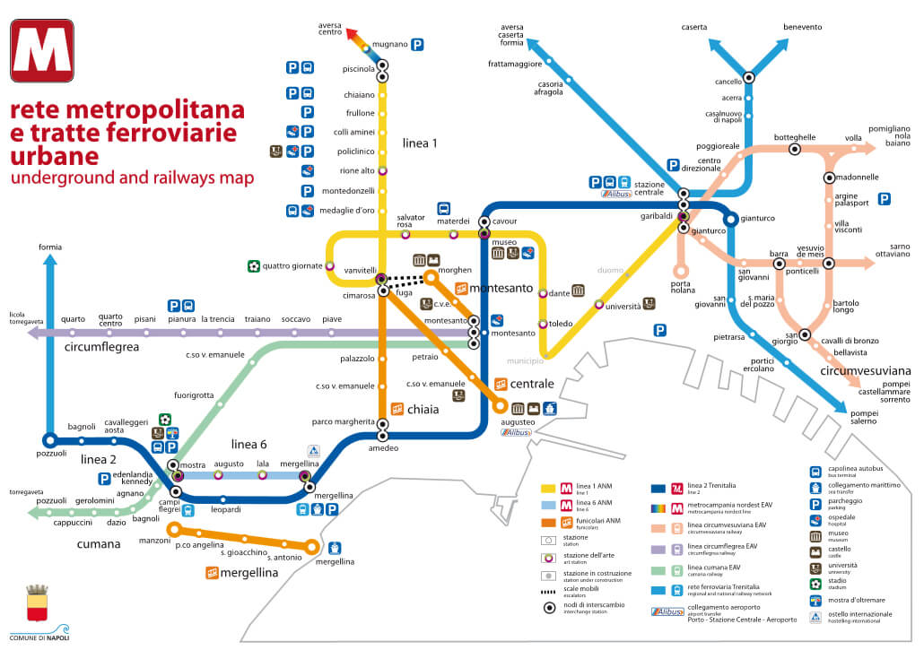 According to many tourists, the Naples metro is the most beautiful in the whole world. Although it is very young and only opened in 1993, the first line stations have been included in the list of the best metro stations in the world for many years. The Naples metro is loved not only by local residents, but also by many visitors to the city. This is one of the attractions of Naples. The Naples metro is a system of high-speed transport lines. As a rule, it includes both capital lines and sections of suburban railway lines, as well as four funiculars.