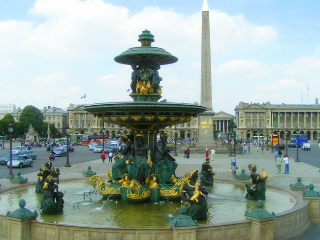 Originally, there was a statue of Louis XV on horseback here on horseback and other statues. During the French Revolution it was called the Place de la Revolution and a guillotine was erected there. Louis XVI, his wife Marie Antoinette, and later Danton and Roberspierre were executed in this square. After a few years the situation calmed down and the square was given a new name – Place de la Concorde. In 1836, an obelisk of the Egyptian pharaoh Ramses II was erected on the square, which was given to the French by the ruler of Egypt Mehmet Ali.