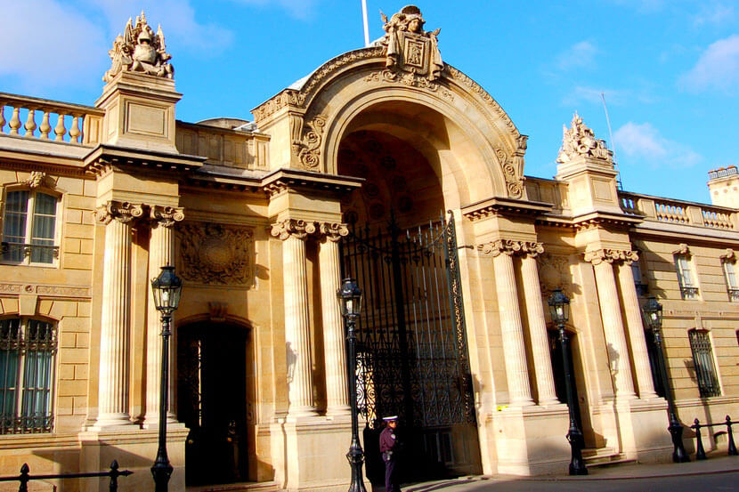 If you turn from Avenue Gabriel onto the Champs Elysees, and from there onto the Faubourg Saint-Honoré, you will see the Elysee Palace, where the French President and ministers decide affairs of state.