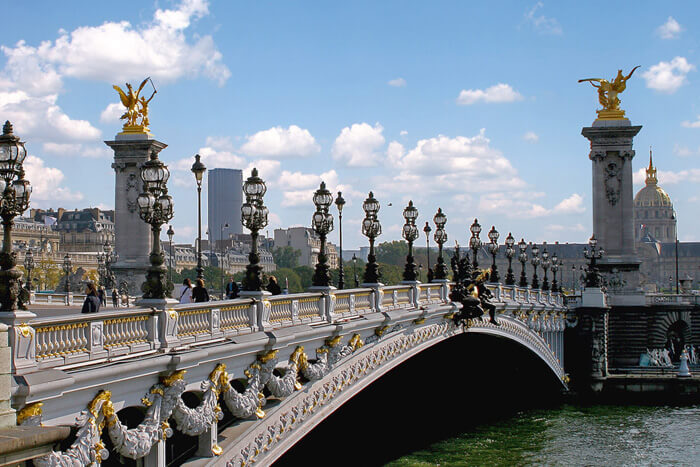If you go straight along the road, you will reach the beautiful Alexander III bridge: