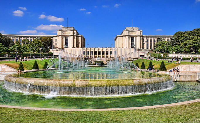 Opposite the Eiffel Tower, on the other bank of the Seine, on the site of the Trocadero Palace, is the Palais de Chaillot.