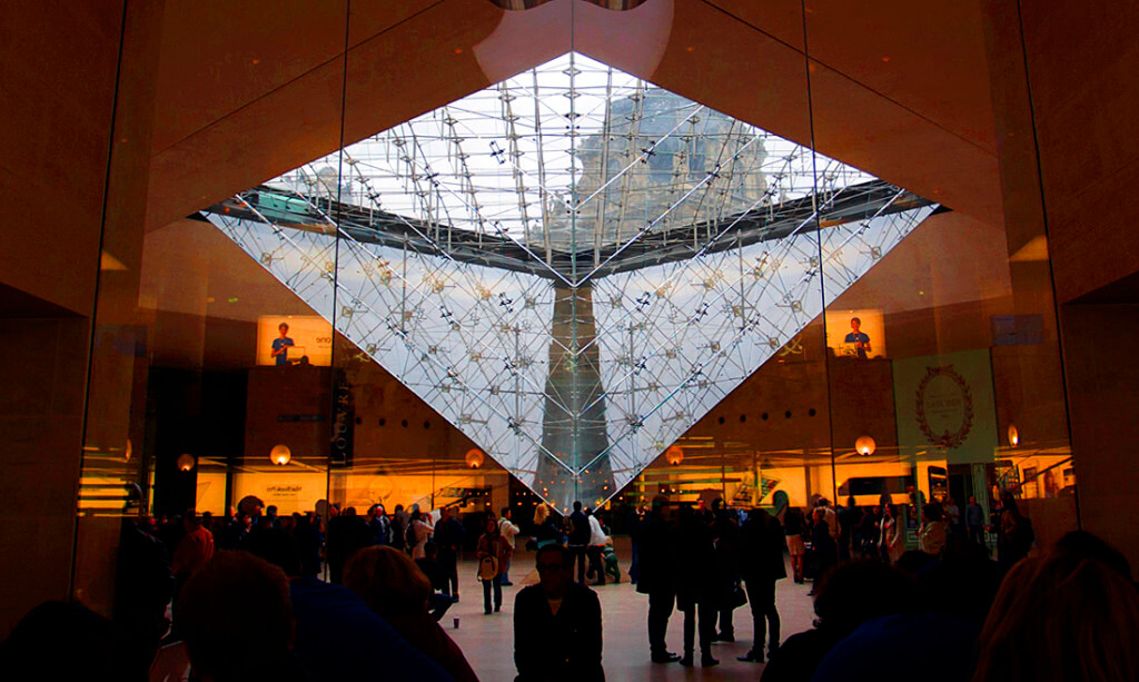 A few steps from the Pont Neuf is the Louvre. From the island, return to the right bank of the Seine and walk along the beach past the row of Parisian booksellers. Step boldly through the doorway from the square courtyard into the main courtyard of the Louvre and you will find yourself at the glass pyramids of the architect Ming Pei.