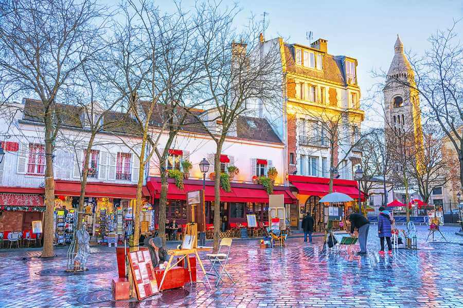 On the left, your attention should be drawn to the pink house of the artist Maurice Utrillo and the top of the Sacré-Coeur Basilica. You are close to your goal! Along the way, you will pass by the Place du Tertre, where locals will be happy to draw your portrait or sketch, or sell you their own painting.