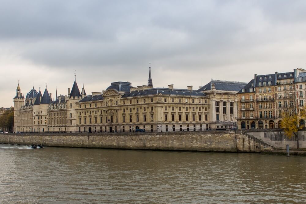 This is what the Conciergerie (La Conciergerie) looks like - a former royal palace, and later a prison. Marie Antoinette was kept here before her execution. This building is part of the Palace of Justice complex (Palais de Justice).