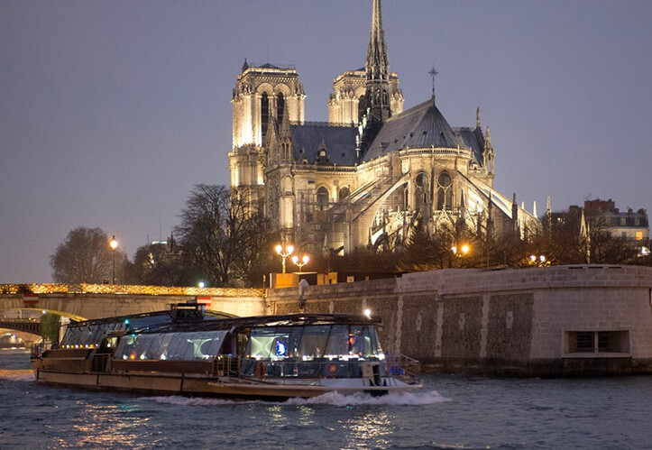 Passenger boarding and disembarking takes place near the Eiffel Tower, on the right bank of the Seine, at the pier Port de la Bourdonnais or near Notre Dame Cathedral. For more information, please visit the company's official website — https://www.bateauxparisiens.com.