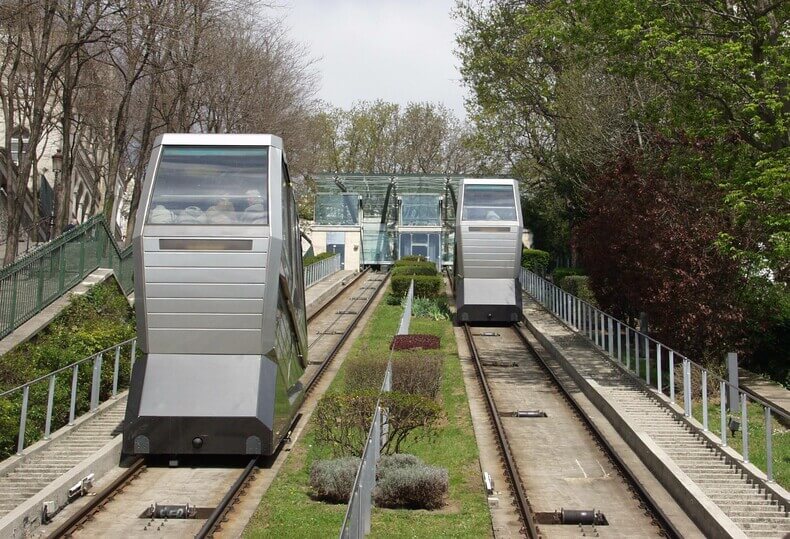 The funicular consists of only two cabins that take passengers to the Sacre-Coeur Basilica. The length of the line is 108 meters and this distance can easily be covered on foot, but visiting Montmartre and not riding the famous funicular is a kind of "crime". The funicular itself is a landmark and appears in many literary works and films.