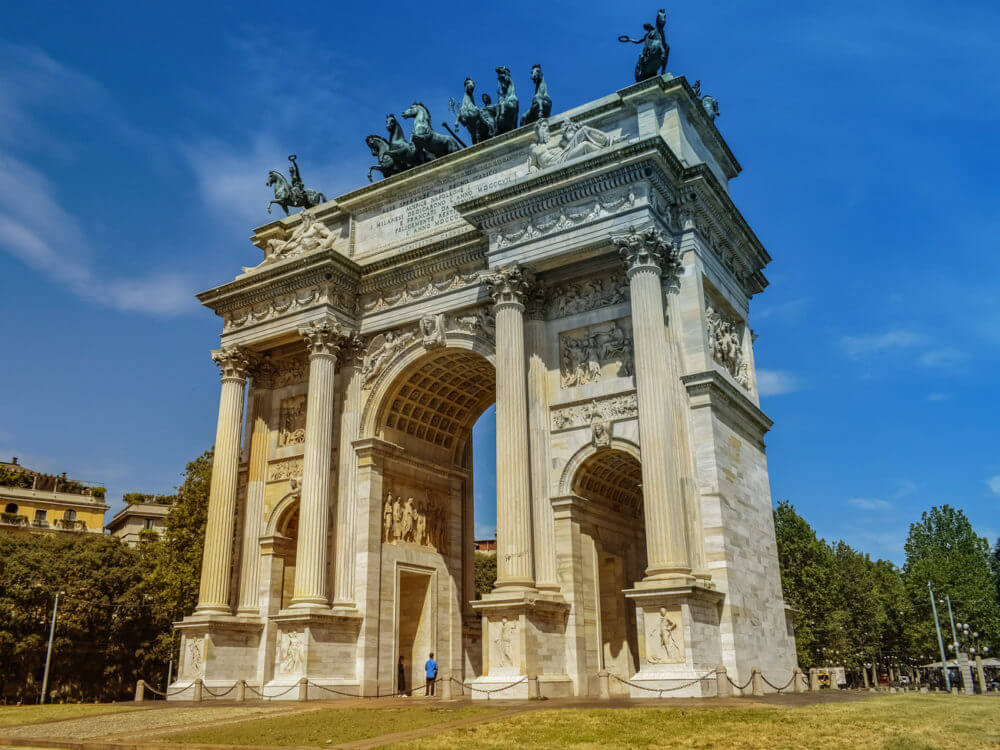 The arch was originally conceived in connection with Napoleon's triumphal entry into Milan, but its construction was stopped. After the reign of Napoleon, in 1826, the Austrian Emperor ordered its construction to be completed. Construction was completed after his death, and in 1838, during the reign of Emperor FerdinandI, the name of the arch was changed to “Arch of Peace” and dedicated to peace among the peoples of Europe. Made of marble, designed in neoclassical style. Its height is 25 meters, width is 24 meters.