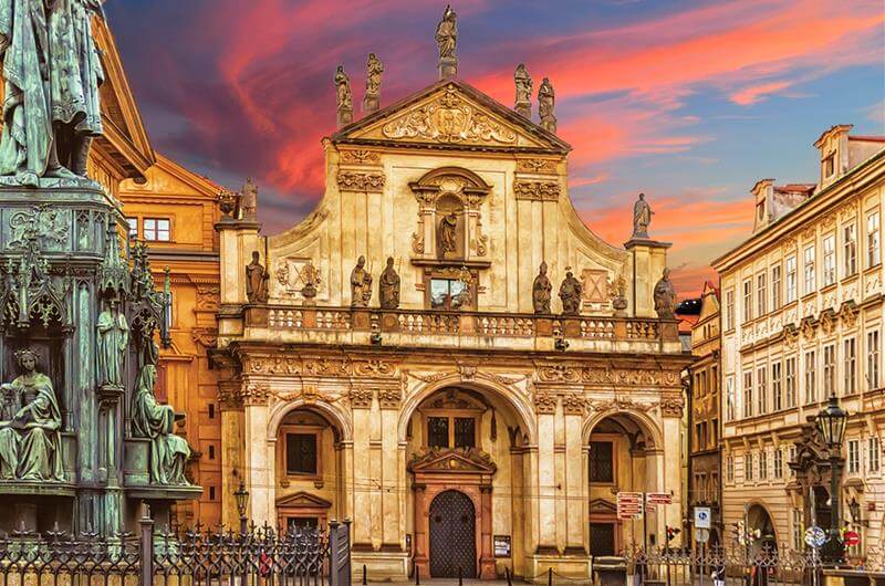 Pass Charles Bridge and the Church of St. Salvator: