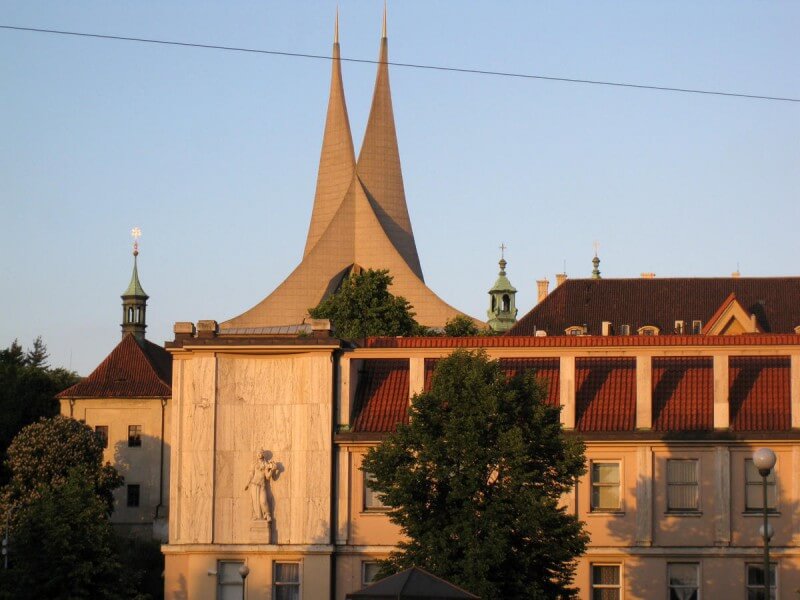 Continue moving towards "Nove Mesto". Along the way you will come across the Emmaus Monastery. It was built by order of Charles IV in the 14th century, although it was significantly damaged during World War II, and during the restoration they decided to replace the towers with concrete spires.