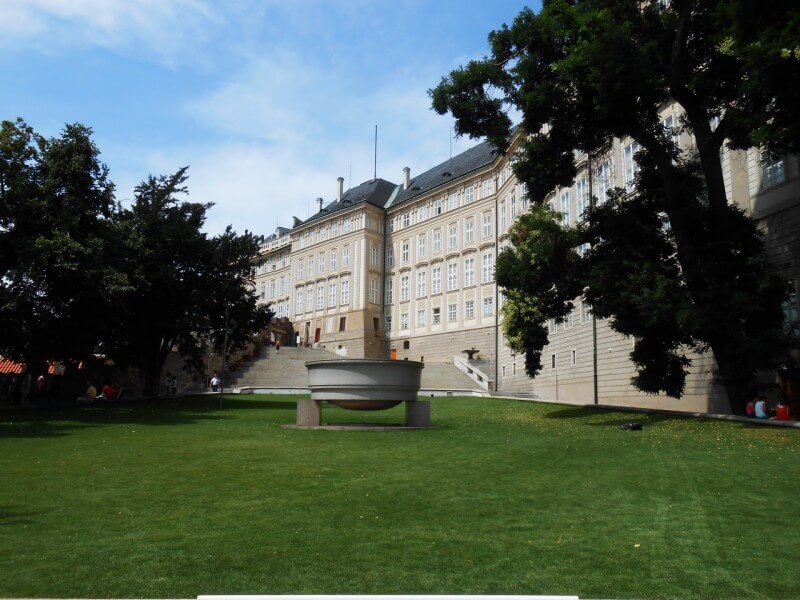 Behind the well is the northern entrance to Prague Castle. From here, you can get to the royal garden via the Powder Bridge. The gate is guarded by guards.