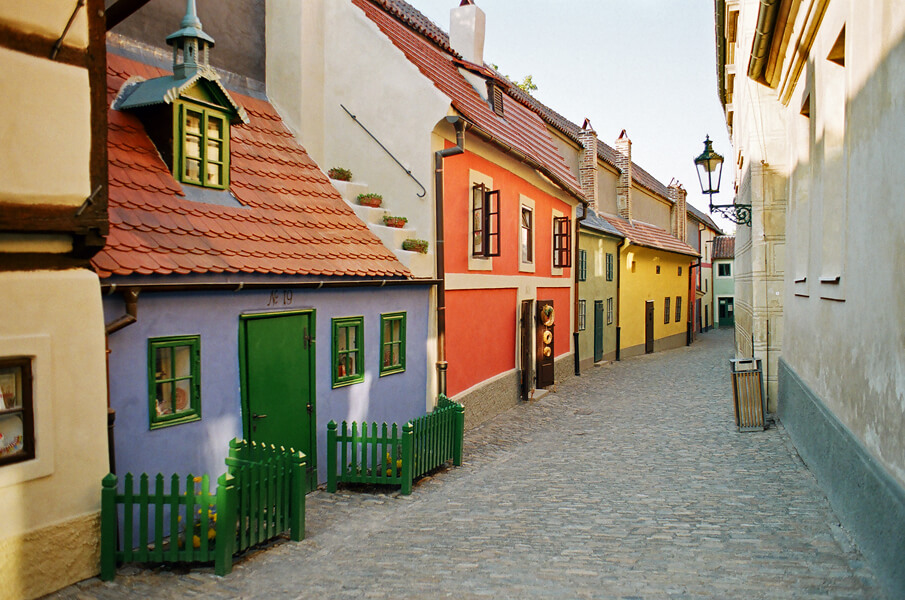 A colorful street in the center of Prague Castle with small colorful houses built into the arches of the former castle, where in the Middle Ages, together with the Prague guard, lived the royal alchemists, who prepared gold, the philosopher's stone and various elixirs for it. By the way, the famous writer Franz Kafka lived in the house №22 in 1916-1917.