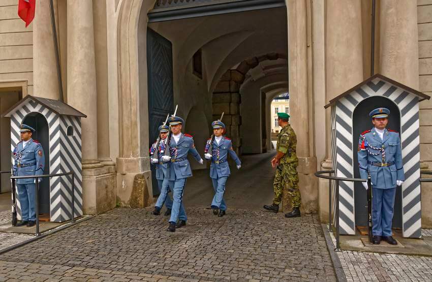 Changing The honor guard is a spectacular event. The ceremonial change takes place every day at 12:00, and the standard one - every hour. Guards stand at the central entrance to Prague Castle, at the entrance to the second courtyard and at the Black Tower.