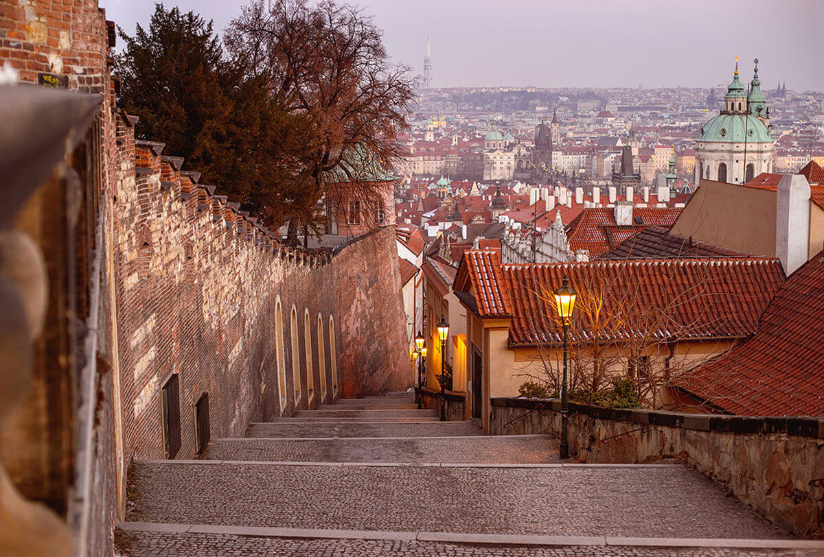 Option 3 (more difficult, as you have to go uphill, but there is a beautiful view of the roofs of the Lesser Town houses) - by tram №22 to the stop Malostranské náměstí. From here Nerudova Street begins. Go to Zamkova Street, follow it and you will come out on Tunovska Street. Turn left, walk about 50 meters to the new staircase, enjoy the beautiful roofs of the Lesser Town houses and go up to Hradcany Square, to the entrance to Prague Castle;