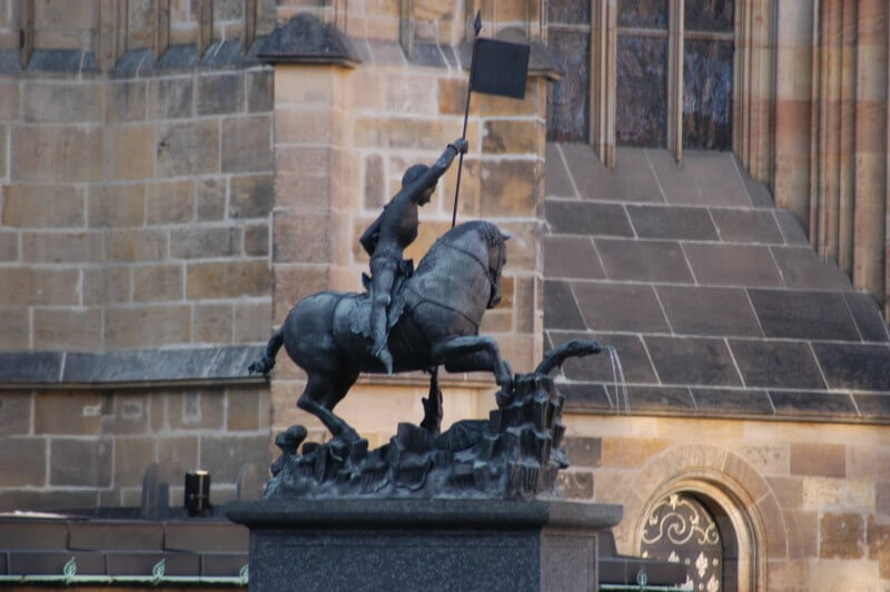 In the center of the main courtyard is a statue of St. George. It was created in 1373 and has been damaged several times over the years. After the last restoration, the statue was moved to the old royal palace, and a bronze copy was erected in its place.