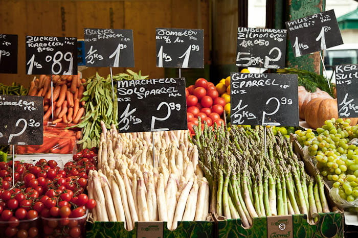 You can also buy food at the market. There are four of these in Vienna. Naschmarkt (in the city center), Karmelitmarkt (in the Jewish part of the city), Brunenmarkt (the eastern market in the Turkish quarter, away from the center) and Rochusmarkt. Now I will introduce you to approximate food prices in Vienna.