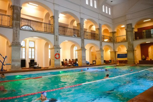 The Rudas Bathhouse also has a regular pool. You can only take his ticket (the cheapest one). Keep in mind that you can’t go anywhere else from here - there are turnstiles everywhere, which will only allow entry if you touch the bracelet. You must wear a swimming cap. If you don't have one, you'll have to buy a disposable one (rubber or polyethylene).
