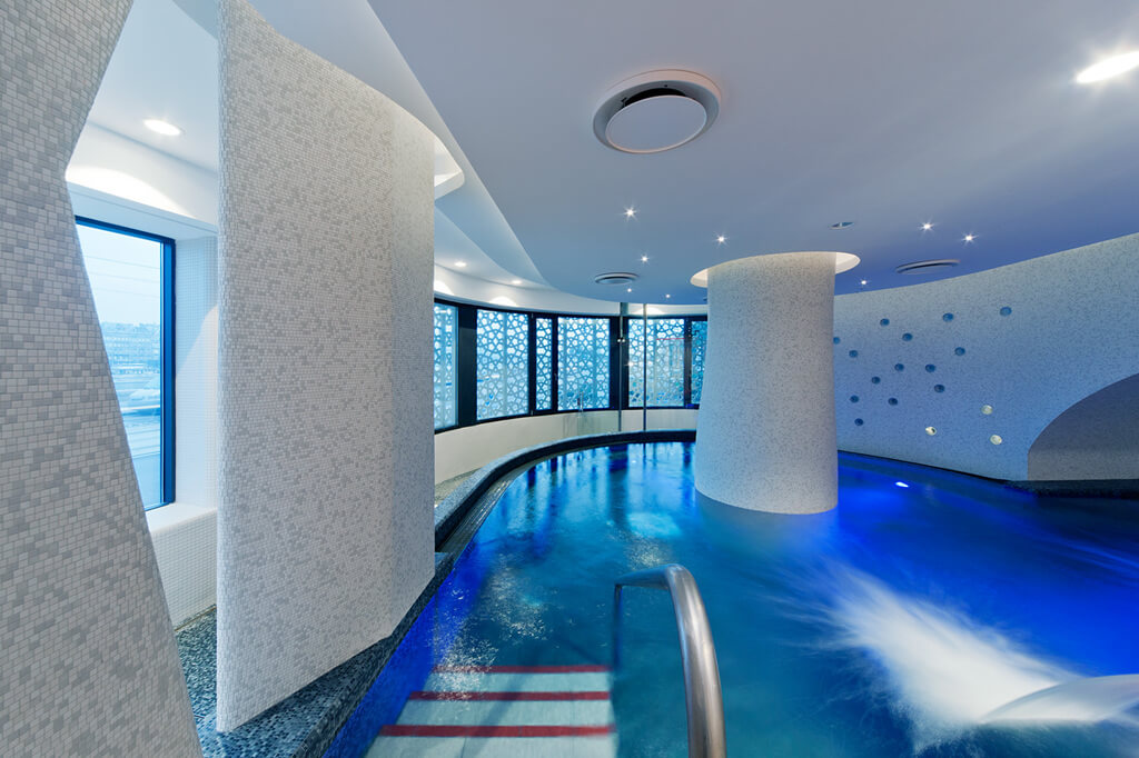 There is a steam and Finnish sauna. The wellness center includes 6 thermal pools of varying sizes, depths and temperatures. You will go to the coldest one after the sauna, to the cold one for swimming, to the warm one for relaxation.