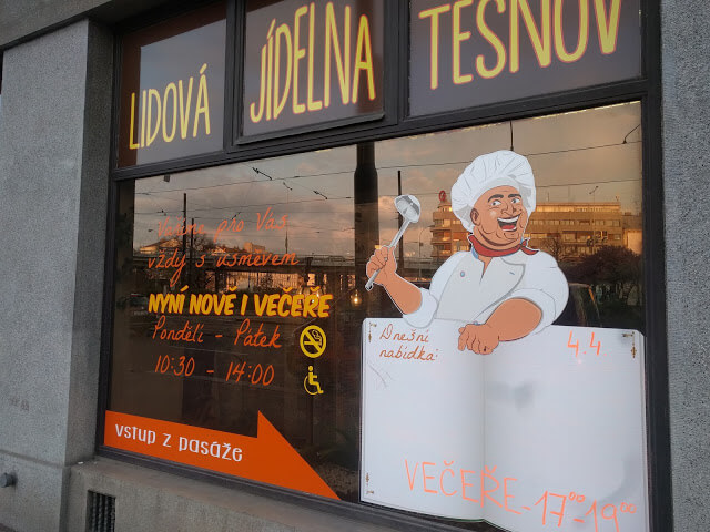 Address: Vodičkova 39 pasáž SVĚTOZOR Nové Město Praha 1 (near Wenceslas Square). Nearest metro station: Mustec. Open from 11:00 to 15:00. A set dinner will cost you 100-110 CZK (large portion).