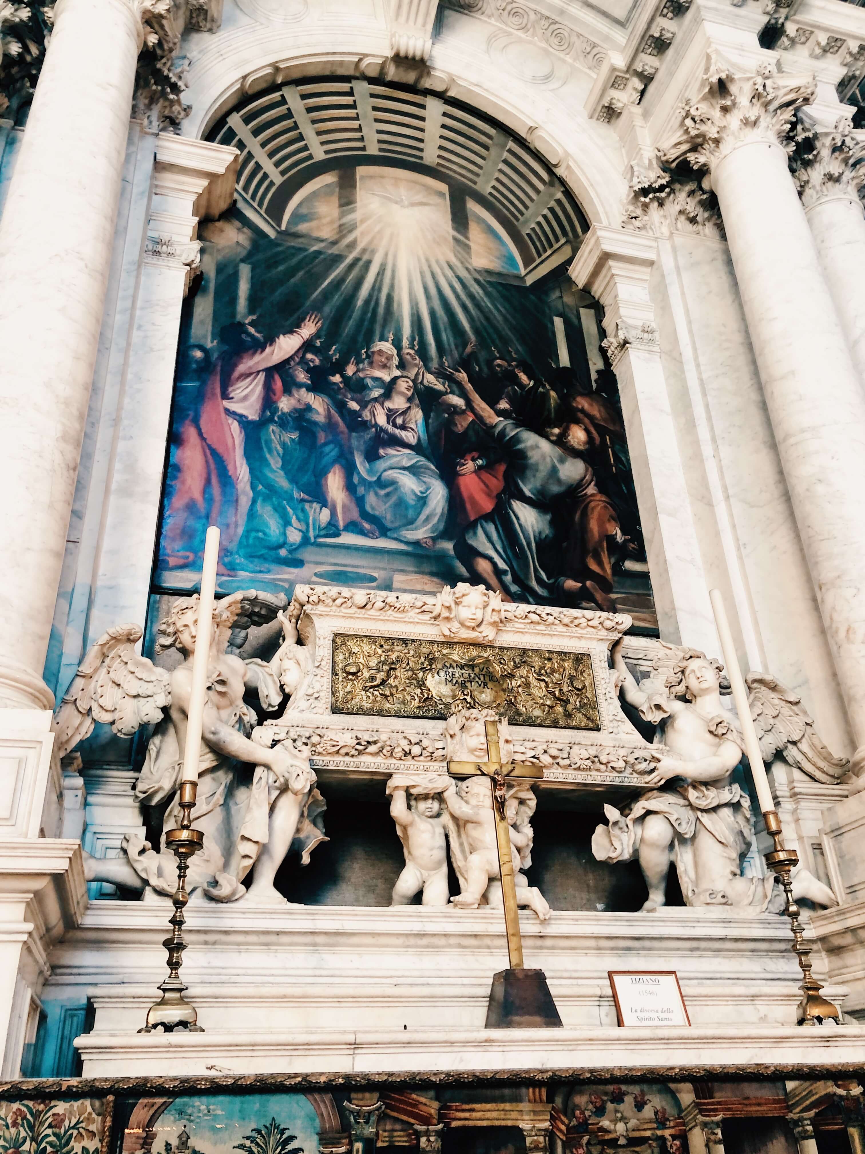 The church is decorated with paintings by the greatest Italian artists: “The Marriage at Cannes” by Tintoretto, “The Ascension” by Luca Giordano, “David and Goliath”, “The Sacrifice of Abraham”, “The Sacrifice of Abraham”, “The Descent of the Holy Spirit on Apostles", "Cain and Abel" by Titian and others.