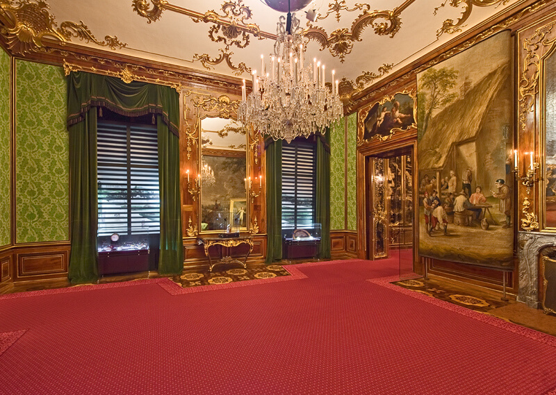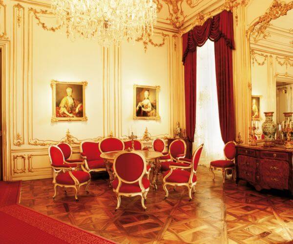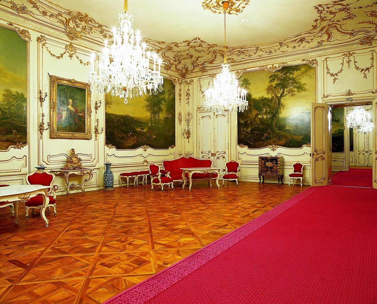 In the southwestern part of the palace there is a room where the emperor's wife Maria of Bavaria had breakfast. The room is decorated with Rococo style details.
