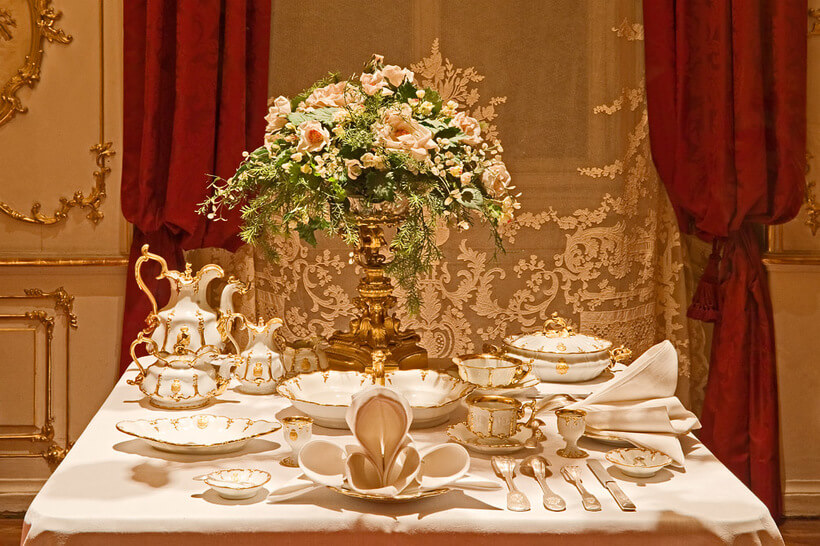 They had dinner in the next room. On the table are crystal goblets and dishes made of Viennese porcelain. In the center is a portrait of twenty-year-old Franz Joseph. This room is named after Marie Antoinette, as a tapestry depicting her and her children once hung here. It is currently the private property of the Habsburg family.