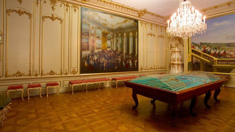 This is Franz Joseph's living room. The Emperor received members of his government and other high-ranking officials here. To prevent them from getting bored while waiting for their turn, a billiard table was installed for them.