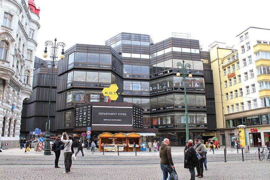 Opposite the Palladium is the Kotva Shopping Center (Kotva) - one of the most popular department stores in the Czech capital.