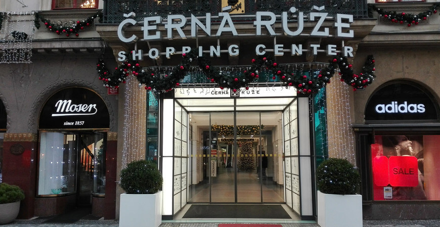 A little further, on the shopping street Na příkopě, there are two more shopping locations. One of them is Cerna Ruze (Black Rose), which has about 50 shops of famous designers