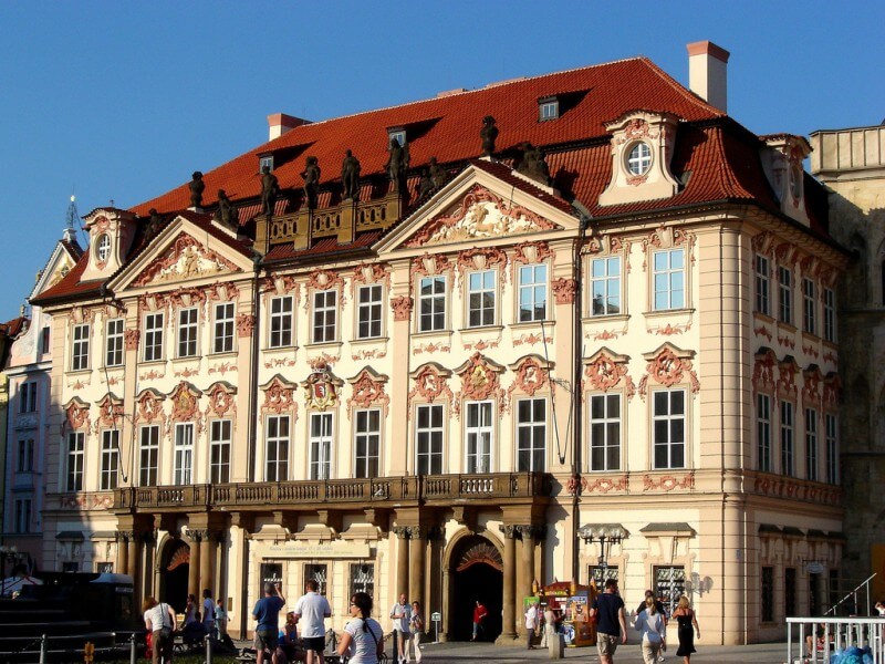 The building is currently used as an exhibition hall of the National Gallery. It is interesting that the Kinsky Palace is not in line with other buildings, but is pushed forward. According to one version, the reason for this was that its owner, Count Jan Goltz, bribed the officials of the time.