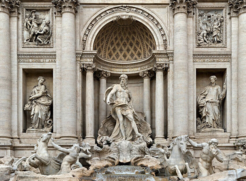 For centuries, water in Trevi Square could be drunk from an ordinary spring that flowed into a stone bowl. In 1629, Pope Urban VIII decided to decorate the center of the capital with more elegant architecture and commissioned the famous Baroque master Bernini to create a fountain. But Urban VIII soon died and the work was stopped. In 1732, by order of Pope Clement XII, the fountain project was created by the architect Niccolò Salvi. The sculptors Pietro Brachi and Filippo Della Valle participated in the work. All the work was completed in 1732.