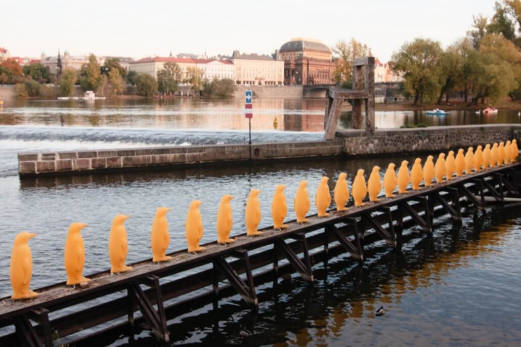 Behind the penguins you can see another unusual sculpture - Chair on the Vltava River.