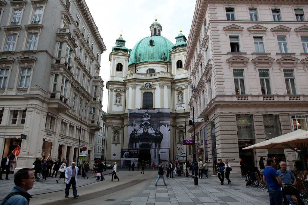 You will pass the "plague" column, turn right onto a small street and find yourself in the narrow St. Peter's Square. In front of you rises the Church of St. Peter (Peterskirche). According to one version, it was founded by Charlemagne in the 8th century, although it took on its current form at the beginning of the 18th century.