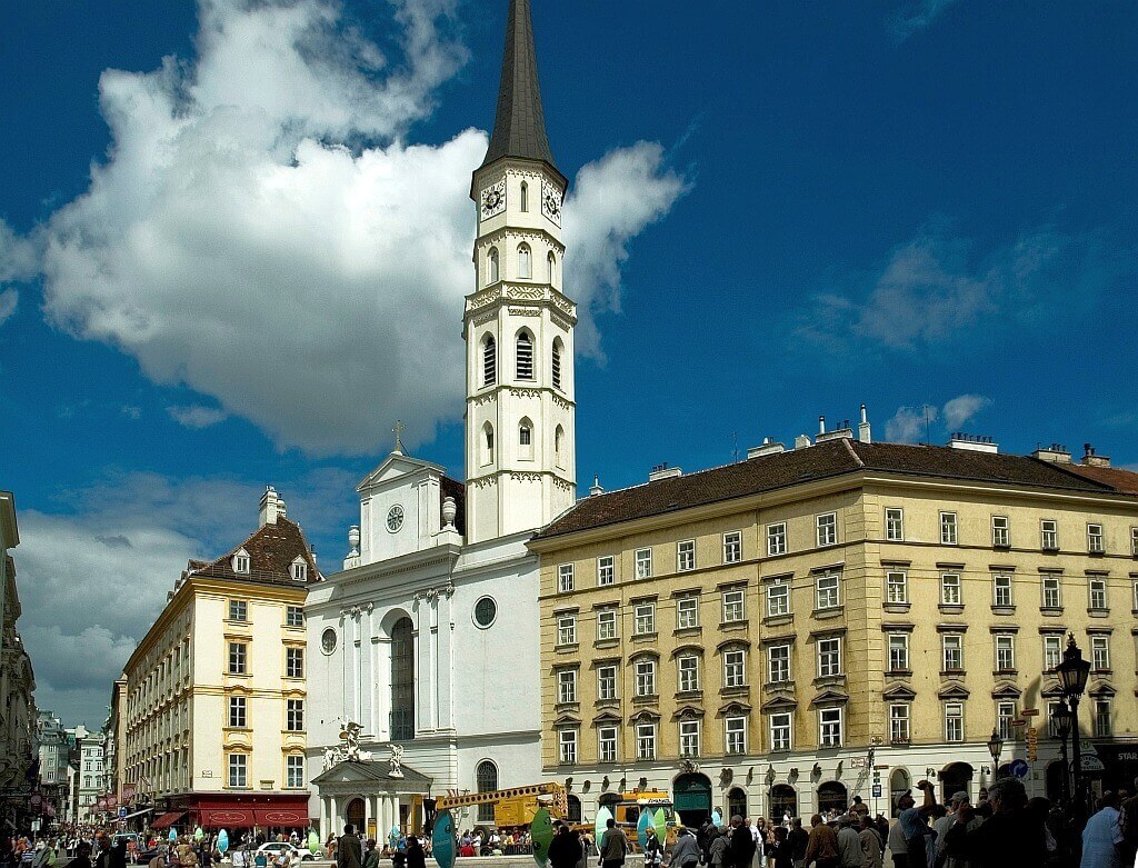 From Kohlmarkt we can go to Michaelerplatz. On the square there is a church of the same name. By the way, part of Mozart’s immortal “Requiem” was performed for the first time in it (this work was completed by others after the composer’s death).