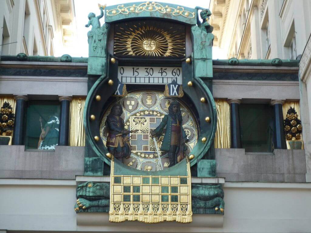 If you are not too lazy, walk along Rottenturmstrasse from Stephansplatz and turn left, you will go out to Hoermarkt, where in rooms 10-11 you will see the “Anker Clock”, which since 1911 has connected the two buildings of the Anker insurance company " They are also called the dancing clock, because every day at 12 o’clock in the afternoon 12 historical figures (Charlemagne, Maria Theresa, Marcus Aurelius, Haydn, Eugene of Savoy, etc.) appear from there, accompanied by different music, and at 5 and 6 o’clock in the evening they are heard Christmas melodies.