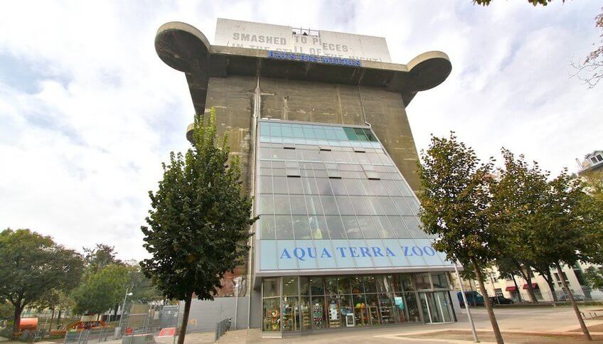 House of the Sea is an oceanarium, terrarium and zoo combined. It is located in a former air defense tower. At the top there is a terrace overlooking Vienna.