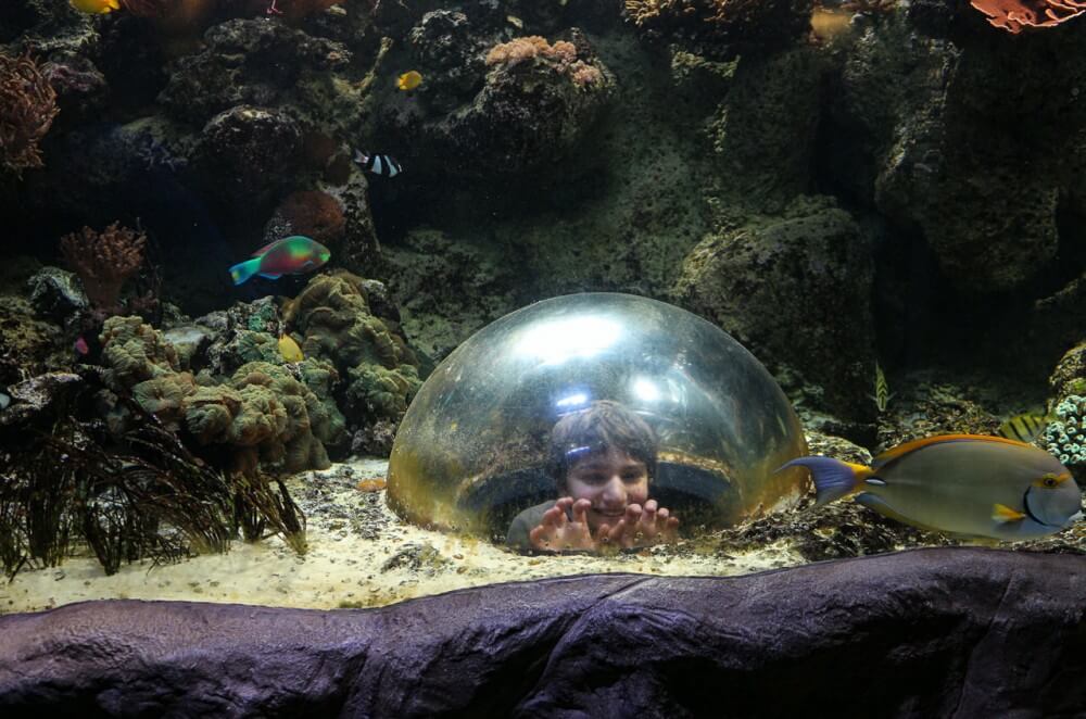 Here you will see sharks, piranhas, turtles, rainforest creatures, coral reefs and tides.