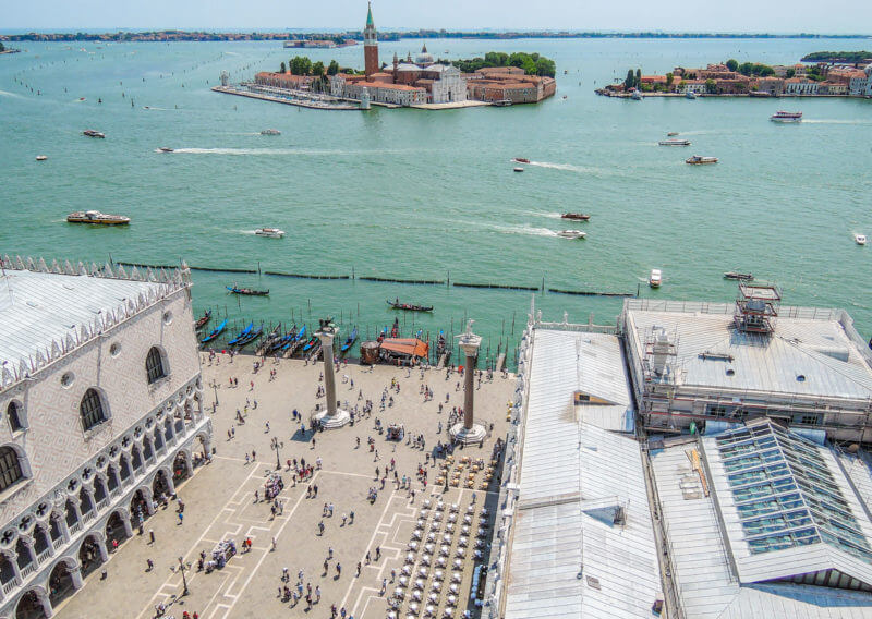 The height of the bell tower is 98.60 meters. It is equipped with a viewing area from which a magnificent view of Venice opens.