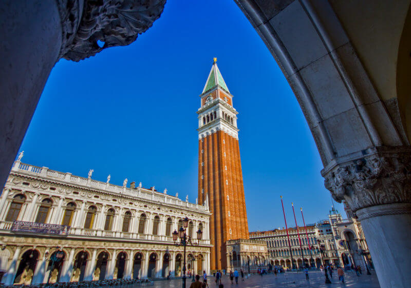 The tallest building on the square is the Campanile - the bell tower of St. Mark's Cathedral (Campanile di San Marco). It existed since the IX century, but collapsed and was completely reconstructed in 1912.