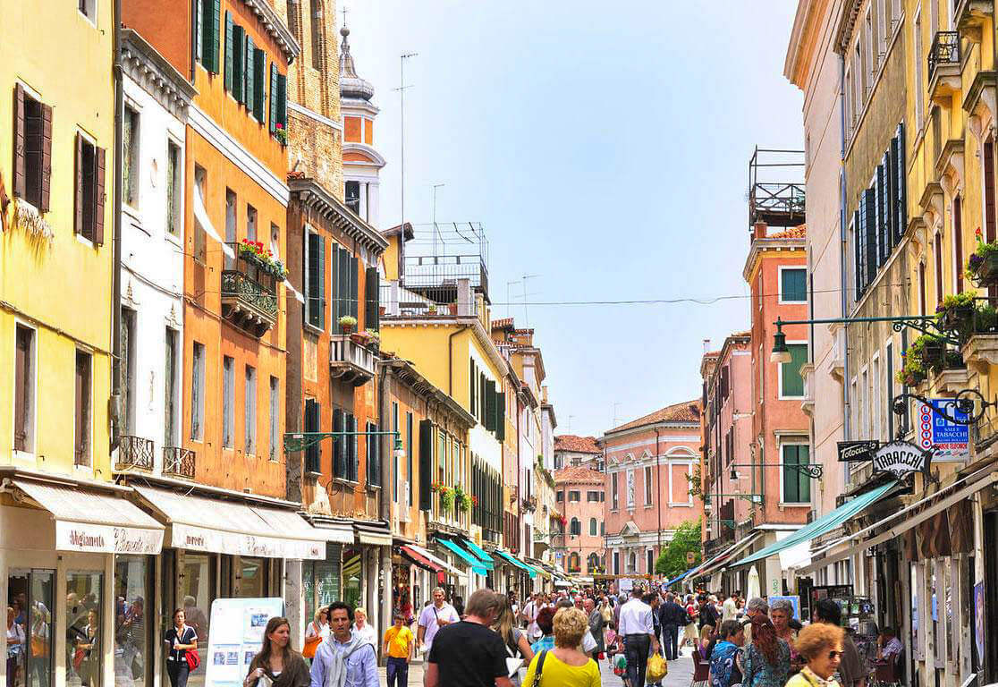 Mercheri is an area of ancient shopping streets from Piazza San Marco to the Rialto Bridge. On the ground floors of the houses there are boutiques and shops where you can buy any antique and modern goods. Let's enjoy the architecture and storefronts and go to the Church of St. Julian (Chiesa di San Zulian).